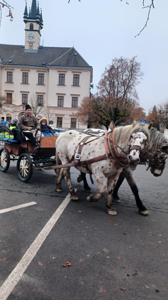 Po kdyňském náměstí se projely v povozu taženém koněm, což pro ně byl nezapomenutelný zážitek. Velkým překvapením bylo, když se k dětem připojil i pan starosta – a navíc jim rozdával bonbony, které vykouzlily spoustu úsměvů. ![]()